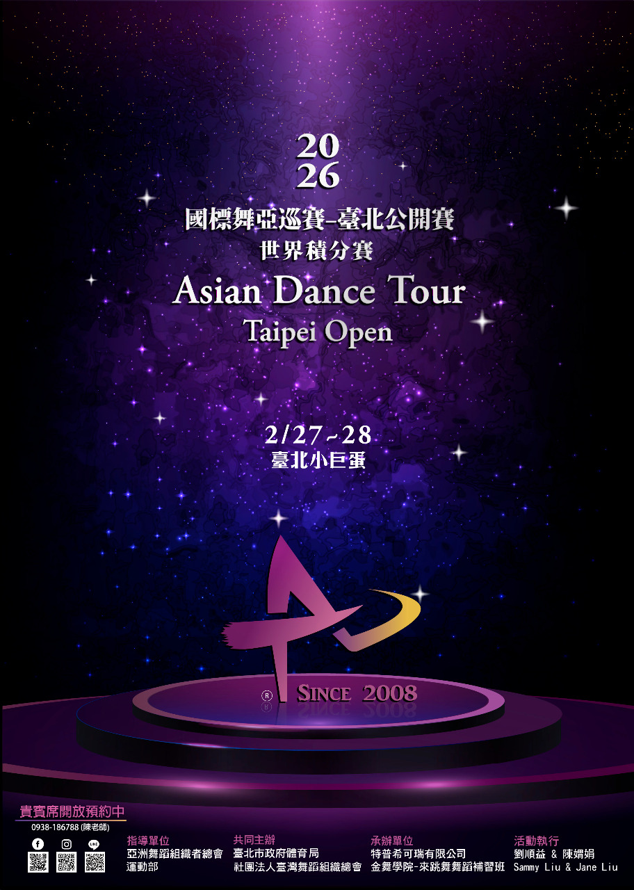 國標舞亞巡賽-臺北公開賽 臺灣第一個WDO世界舞蹈組織總會指定之世界積分賽、唯一的正式公開賽,全世界唯一的國標舞國際性巡迴賽