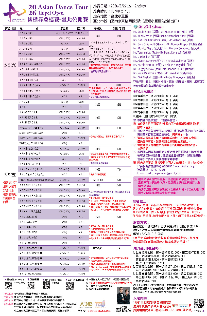 2026 國標舞亞巡賽-臺北公開賽 賽訊公告